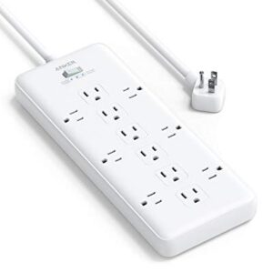 - ?Overload Surge Protection?- The surge protector with overload protection protects your electrical appliances from lighting, surges or spikes. The minimum energy-absorbing capacity of 900 Joules. Lighted on/off switch with integrated circuit breaker for overload protection of all outlets.(The “Surge Protected? indicator light on to show your devices are protected)