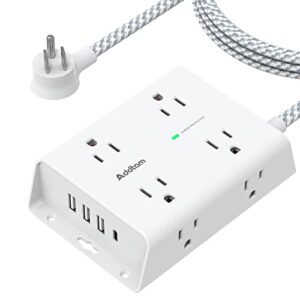 Surge Protector Power Strip, 8 Wide Outlets with 4 USB Charging Ports, 3 Side Outlet Extender with 5Ft Braided Extension Cord, Flat Plug, Wall Mount for Home Office Dorm Room Essentials, ETL Listed