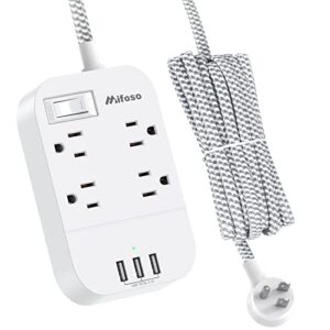 - ?13A 5 FEET UL APPROVED EXTENSION CORD?- Mifaso 3 usb power strip provide a rated power of 1625W (125V~ 13A) and a wide range of power distribution 100~240V, 3 USB charger and 16AWG 5 feet heavy duty extension cord can meet most applications . The braided power cord is not easy to deform, durable and more safety than other power cord.